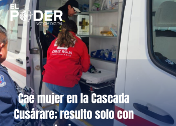 Una mujer turista sufrió un accidente al caer en la parte baja de la cascada de Cusárare, ubicada en Bocoyna, ...
