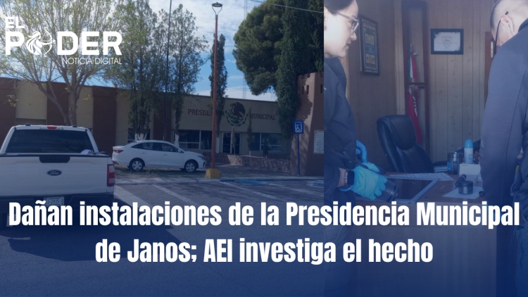 Elementos de la Agencia Estatal de Investigación, de la Fiscalía de Distrito Zona Noroeste, atendieron una denuncia por daños en el edificio de la Presidencia Municipal de Janos, durante la mañana de este viernes cinco de abril.