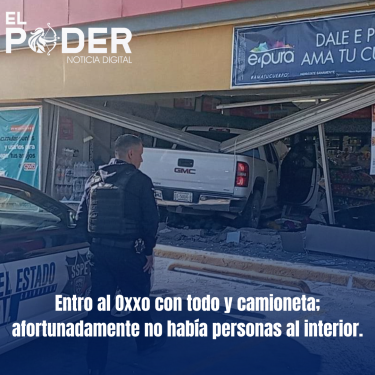 Entro al Oxxo con todo y camioneta; afortunadamente no había personas al interior.