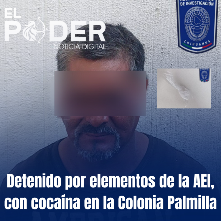 Elementos de la Agencia Estatal de Investigación (AEI) detuvieron en el término legal de la flagrancia, a un masculino de nombre Eulalio V. R., por su probable responsabilidad en delitos contra la salud, en la modalidad de posesión simple de narcóticos.