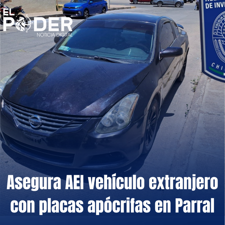 El automóvil fue entregado de forma voluntaria por un particular y fue puesto a disposición del Ministerio Público por el probable delito de Elaboración o Alteración y Uso Indebido de Placas Engomados y Documentos de identificación de Vehículos Automotores, contemplado en el artículo 329 del Código Penal del Estado de Chihuahua.