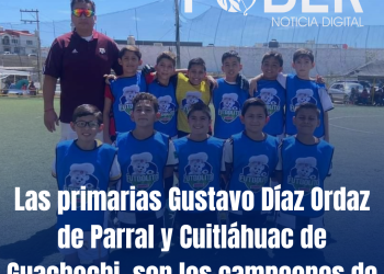 Los representativos d las Escuelas primarias Gustavo Díaz Ordaz de Parral en varonil y la Cuitláhuac de Guachochi en femenil, ...