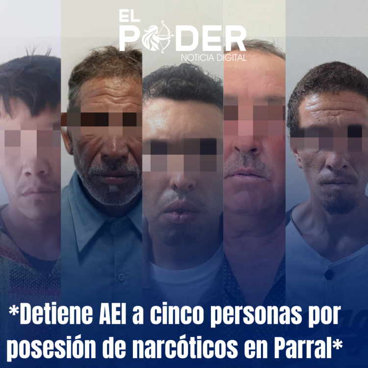 Tras el despliegue de los operativos de seguridad, elementos de la Agencia Estatal de Investigación (AEI), detuvieron en flagrancia a cinco personas del sexo masculino por delitos contra la salud cometidos en la ciudad de Parral.