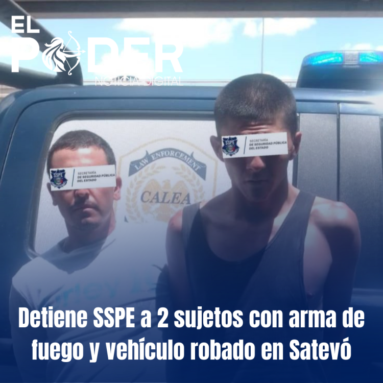 La Secretaría de Seguridad Pública del Estado (SSPE), a través del personal de Despliegue, realizó la detención de 2 sujetos en el municipio de Satevó a la altura del kilómetro 50 de la carretera Chihuahua-Parral.