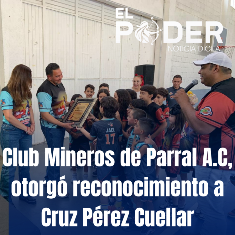 La directiva del Club Mineros de Parral A.C., otorgó un reconocimiento por el apoyo incondicional a esta institución educativa del baloncesto en la ciudad, al edil de ciudad Juárez, Cruz Pérez Cuellar, en evento que tuvo como escenario las instalaciones del Gimnasio del Sindicato del IMSS.