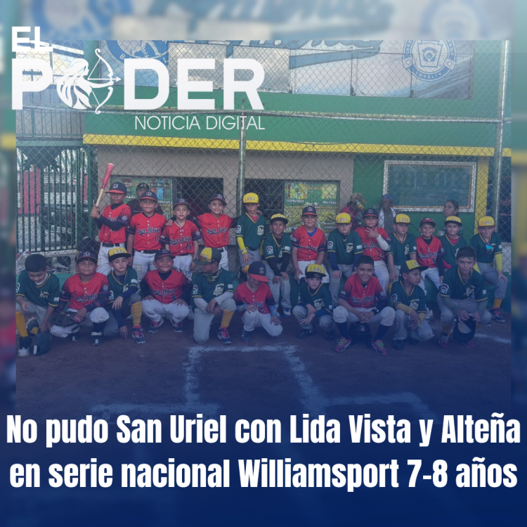 El representativo de San Uriel 7-8 años, no pudo en sus compromisos cuatro y cinco de la serie nacional de beisbol Williamsport, al caer con los combinados de la Liga Linda Vista y Liga Alteña con scores de 3 carreras por 15 y 9-19, respectivamente, en acciones desarrolladas en el campo Oriente de la ciudad de Laredo, Tamaulipas.