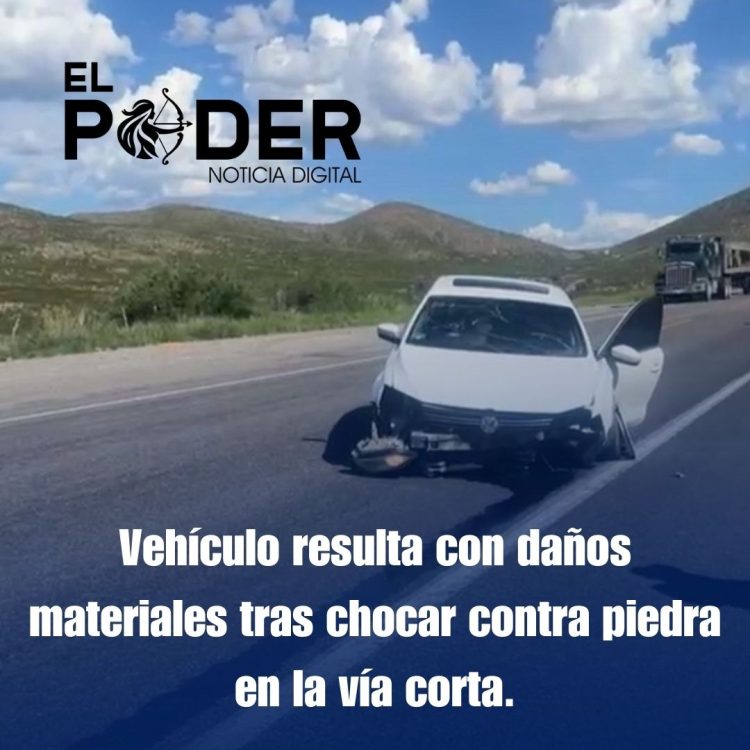 Vehículo resulta con daños materiales tras chocar contra piedra en la vía corta.