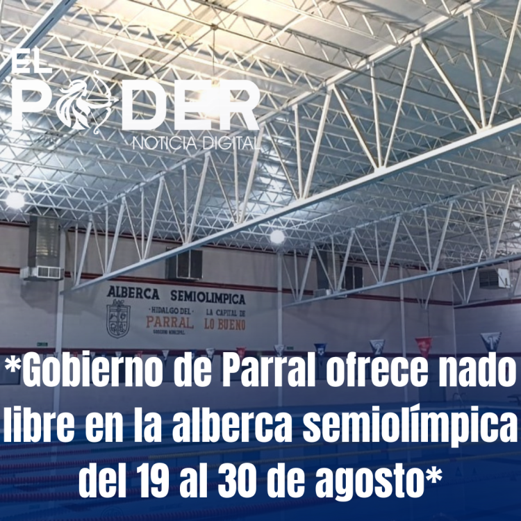 El Gobierno de Parral invita a los amantes de la natación de todas las edades a aprovechar la oportunidad de utilizar la alberca semiolímpica entre el 19 y el 30 de agosto para la práctica de una hora diaria de nado libre. La actividad no contará con instructor, pero estará supervisada por salvavidas.