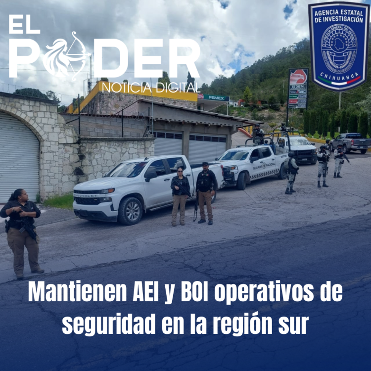 Por su parte las Bases de Operación Interinstitucional (BOI), integradas por la AEI, SSPE, SEDENA y Guardia Nacional, replican las estrategias en la zona serrana, con despliegues permanentes en el municipio de Guadalupe y Calvo.