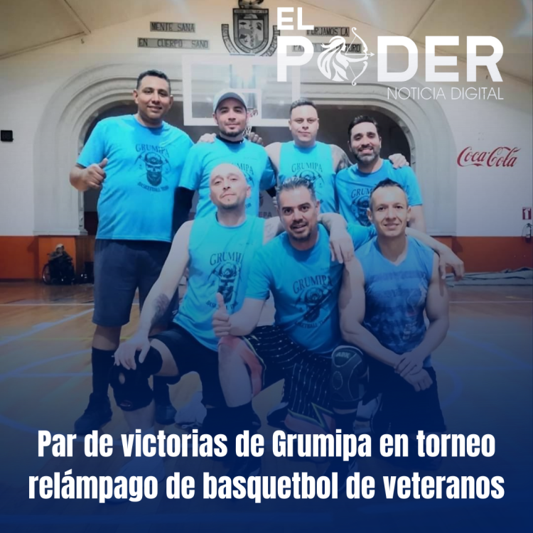El representativo de Grumipa se alzó con par de victorias en su participación en el torneo relámpago de basquetbol en categoría de veteranos, tras vencer a los combinados de 6AM y Tripitas Don Cata, en actividad efectuada en la duela del Gimnasio Auditorio Municipal.