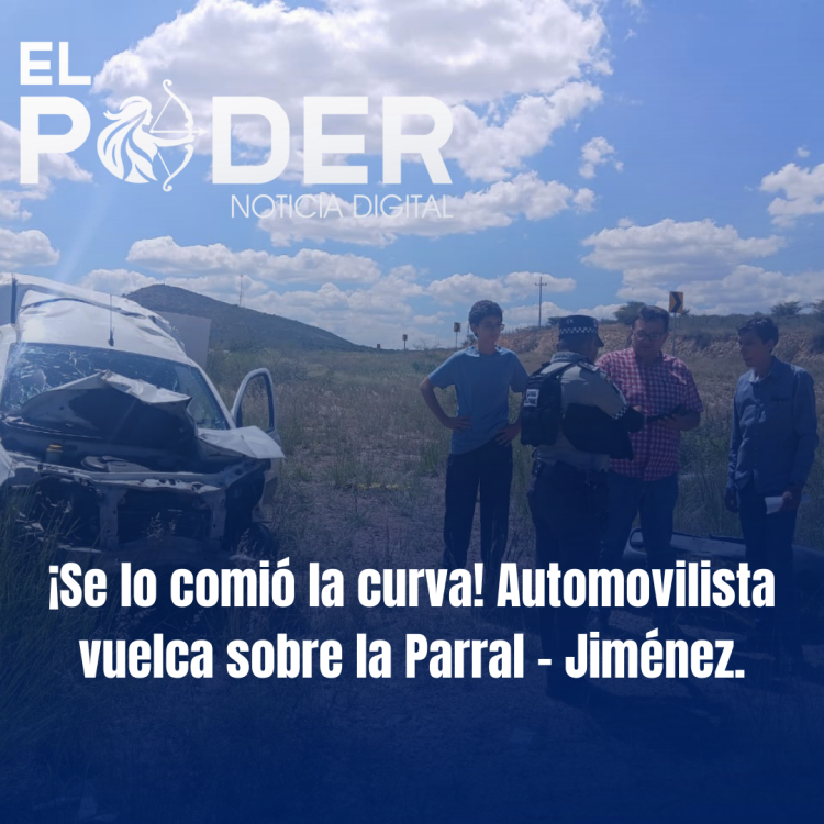 La tarde de este viernes, un accidente automovilístico sobre la carretera Jiménez – Parral, dejo daños materiales en una camioneta, tras salir del camino y volcar.