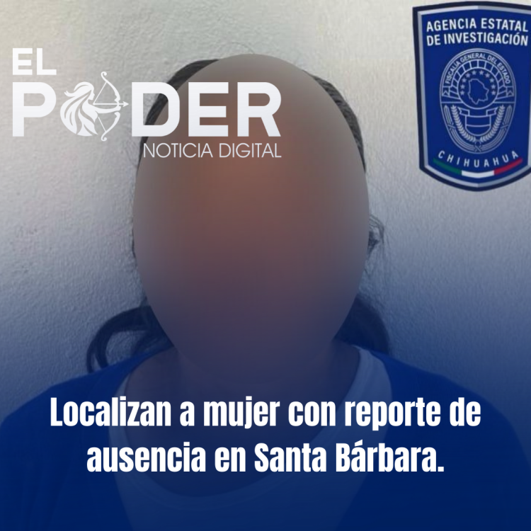 Elementos de la Agencia Estatal de Investigación (AEI) de la Fiscalía de Distrito Zona Sur, localizaron sana y salva a una mujer de nombre Rosa B. V., de 36 años de edad, que fue reportada como ausente el 18 de agosto del presente año en el municipio de Santa Bárbara.