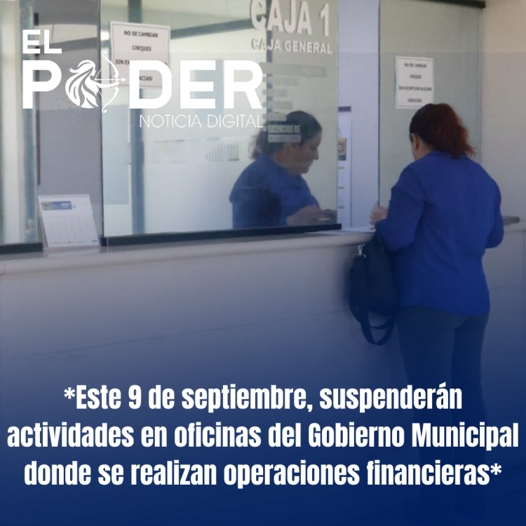 El Gobierno Municipal suspenderá actividades en oficinas del que realizan operaciones financieras, este 9 de septiembre. Dicha medida tiene como objetivo dedicar el día al cierre financiero de la actual administración, dado que dicha fecha marca el último día oficial de labores.