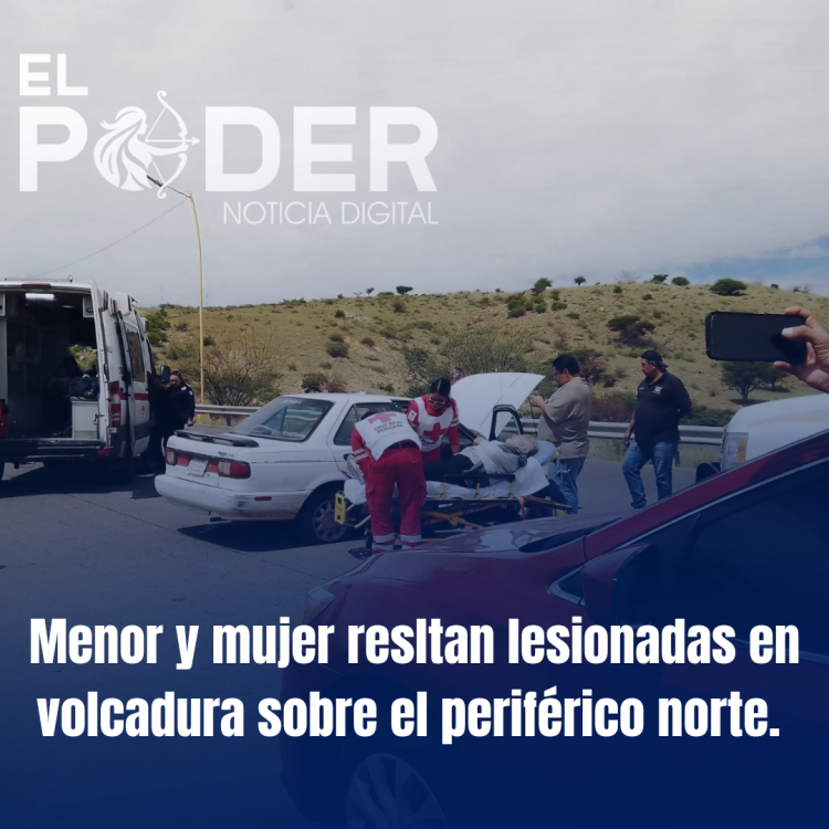 Mujeres resultan lesionadas tras volcadura en el periférico norte.