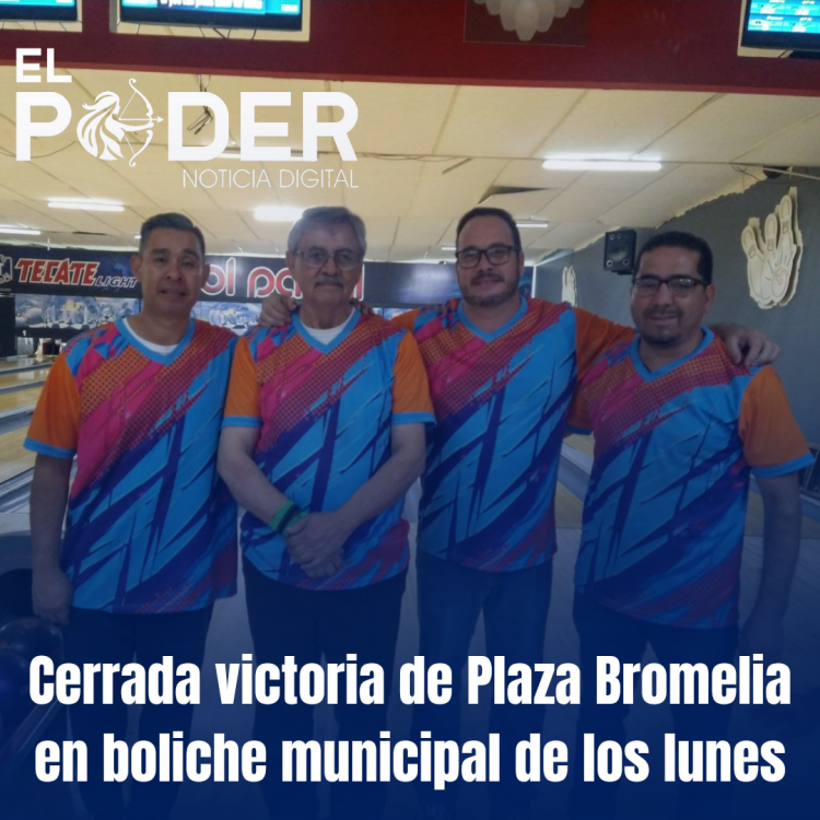 El representativo de Plaza Bromelia se alzó con una cerrada victoria de cuatro puntos por tres, ante la gente de Copo de Nieve, en acciones de la fecha doce del actual torneo 2024 de la Liga de los lunes del Comité Municipal de Boliche que se realiza en las mesas del Bol Parral.