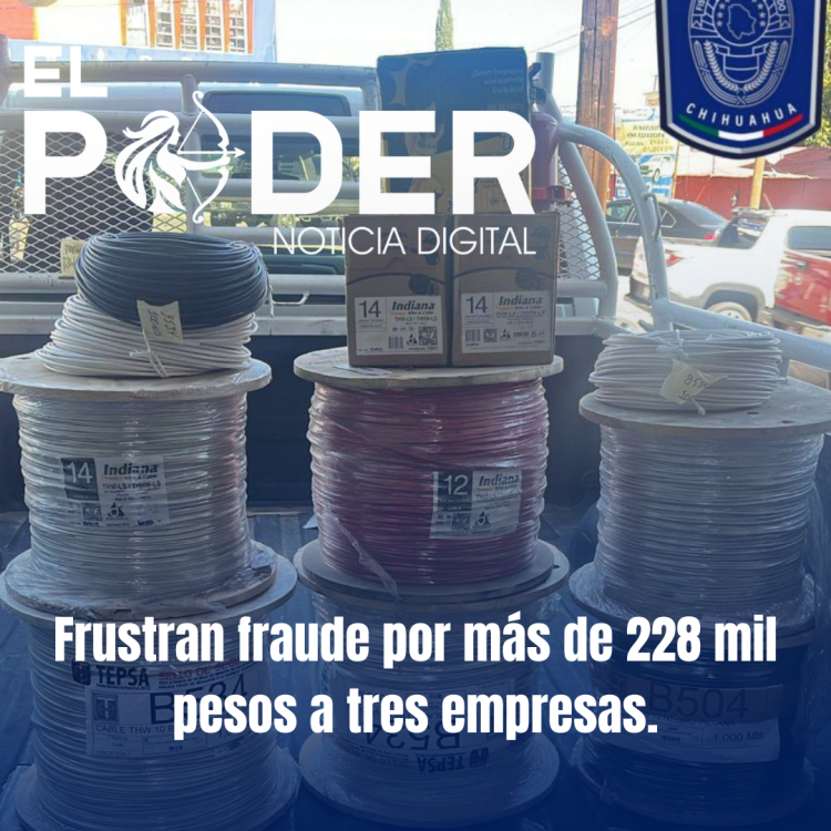 Como resultado de una oportuna y efectiva intervención por parte de elementos de la Agencia Estatal de Investigación (AEI) de la Fiscalía de Distrito Zona Sur, se frustró un intento de fraude cometido en perjuicio de tres empresas comerciales de la ciudad de Parral.