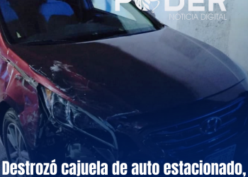 Destrozó cajuela de carro estacionado tras perder el control del volante