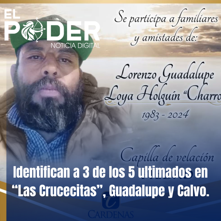 La Fiscalía de Distrito Zona Sur ha identificado a tres de las cinco personas que fueron encontradas sin vida en la localidad de Las Crucecitas, en el municipio de Guadalupe y Calvo, el pasado martes. Los análisis técnicos y científicos realizados por la Unidad de Servicios Periciales y Ciencias Forenses permitieron determinar que se trata de: