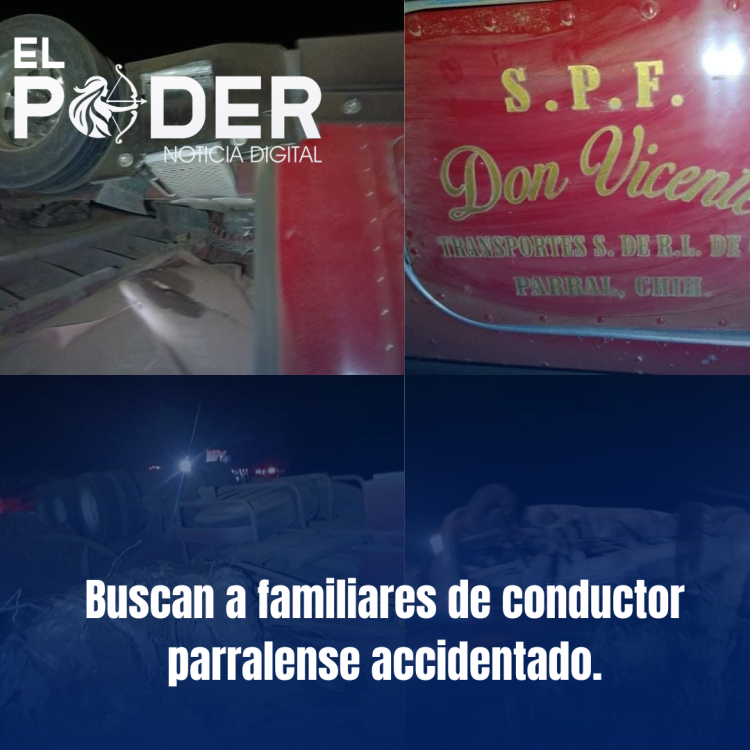 Se busca a los familiares del conductor de un tractocamión con razón social «Transportes Don Vicente» de Parral, Chihuahua, quien sufrió un accidente esta noche en el tramo Flores Magón y Ojo Laguna, kilómetro 60.