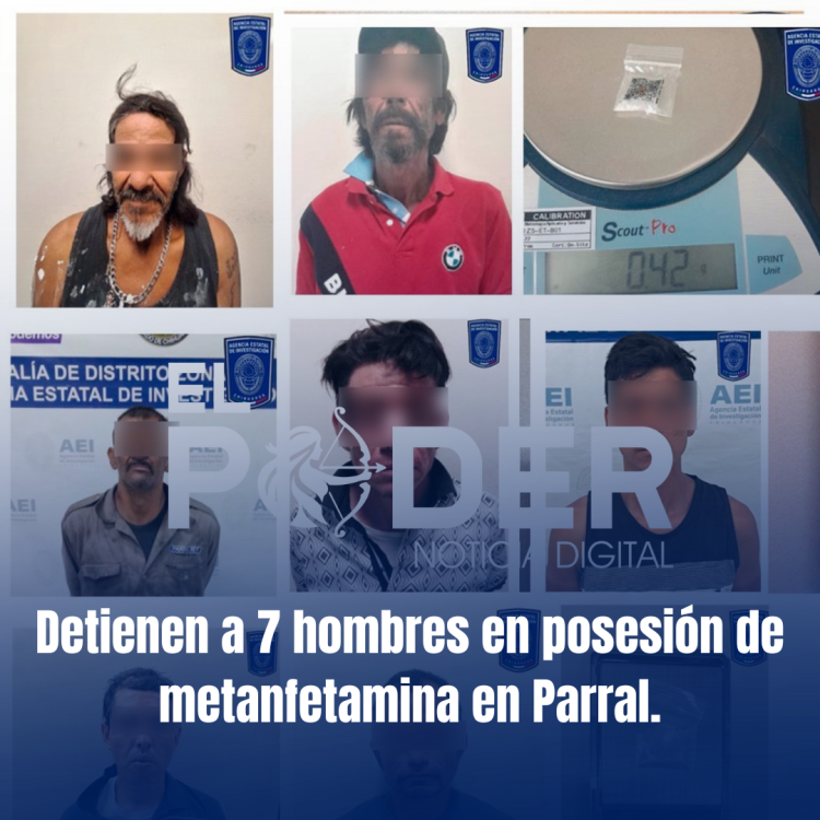 Como resultado de las acciones para combatir el delito de narcomenudeo, elementos de la Agencia Estatal de Investigación (AEI) detuvieron en diferentes sectores de la ciudad de Parral, a siete personas a quienes se les encontró en posesión de metanfetamina, también conocida como cristal.