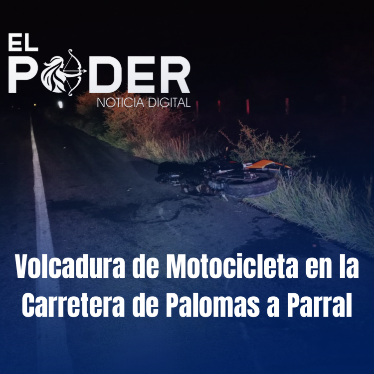 La noche de ayer 6 de septiembre de 2024, alrededor de las 20:20 horas, se registró un accidente de tránsito en el kilómetro 157+100 de la carretera que conecta Ent. Palomas con Parral. El incidente involucró una motocicleta marca Honda, modelo 2017, de color naranja con negro, que sufrió una volcadura.