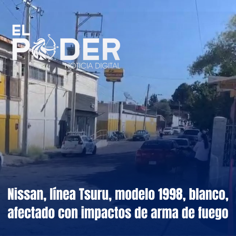 El vehículo afectado es de la marca Nissan, línea Tsuru, modelo 1998, de color blanco, que presentó impactos producidos por proyectil de arma de fuego en la carrocería y en uno de sus cristales.