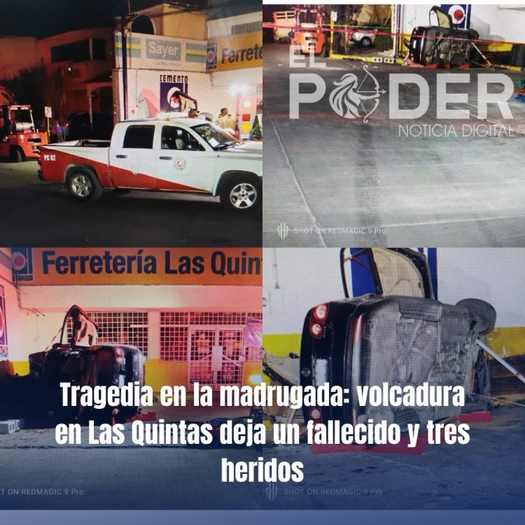 Tragedia en la madrugada: volcadura en Las Quintas deja un fallecido y tres heridos