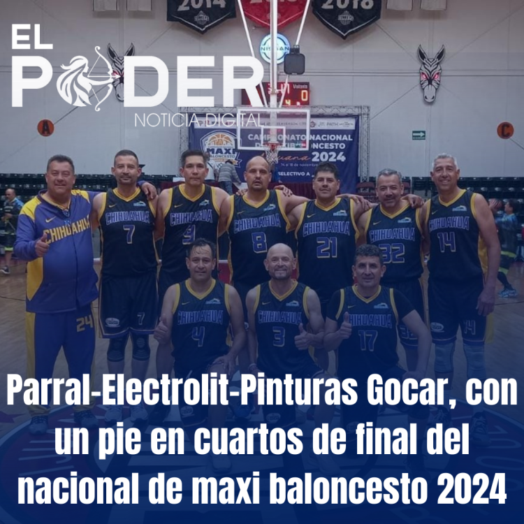 El representativo de Parral-Electrolit-Pinturas Gocar con un pie en los cuartos de final dentro de su participación en el evento nacional de maxi baloncesto en categoría V+ 49 años, al imponerse dentro del grupo «D» al combinado de Cimarrones de BC y Tercos BCS, en actividad que se está desarrollando en ciudad Tijuana, BC.