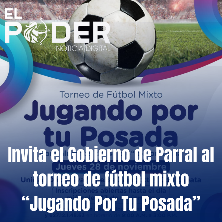 El Gobierno de Parral, a través del Instituto Municipal del Deporte AREA DE DEPORTE ESTUDIANTIL,convocan a participar en el torneo de fútbol mixto “Jugando Por Tu Posada” cuyas inscripciones serán este 27 de noviembre a las 4:00 de la tarde en las instalaciones de Presidencia Municipal.