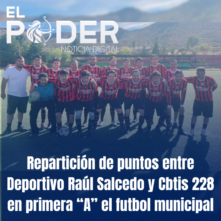 Los equipos Deportivo Raúl Salcedo y Cbtis 228, se repartieron los puntos de la acción de una fecha más del actual torneo 2024-2025 de la Liga Municipal de Futbol, luego de empatar 1-1 en la categoría de primera fuerza “A” y que se llevó a cabo en el estadio olímpico.