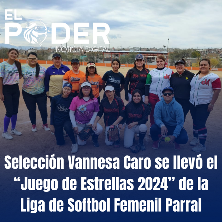 El selectivo denominado Vanessa Caro, se llevó el triunfo del “Juego de Estrellas 2024” de la Liga de Softbol Femenil Parral, al imponerse al combinado Yurico Chávez-Getzemany Andrade, al son de doce carreras por ocho, en acciones efectuadas en el campo del estadio infantil de la Che Guevara.