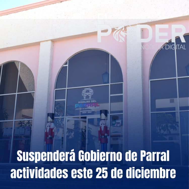 El Gobierno de Parral informó que este próximo miércoles 25 de diciembre habrá suspensión de labores con motivo de la Navidad, por lo que las actividades se reanudarán el jueves 26 de diciembre.