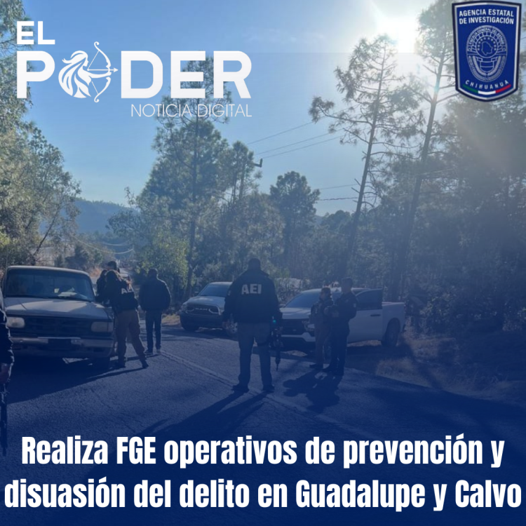 Elementos de la Agencia Estatal de Investigación adscritos a la Fiscalía de Distrito Zona Sur, efectuaron un operativo preventivo y de disuasión del delito en el municipio de Guadalupe y Calvo, privilegiando la seguridad de la población.