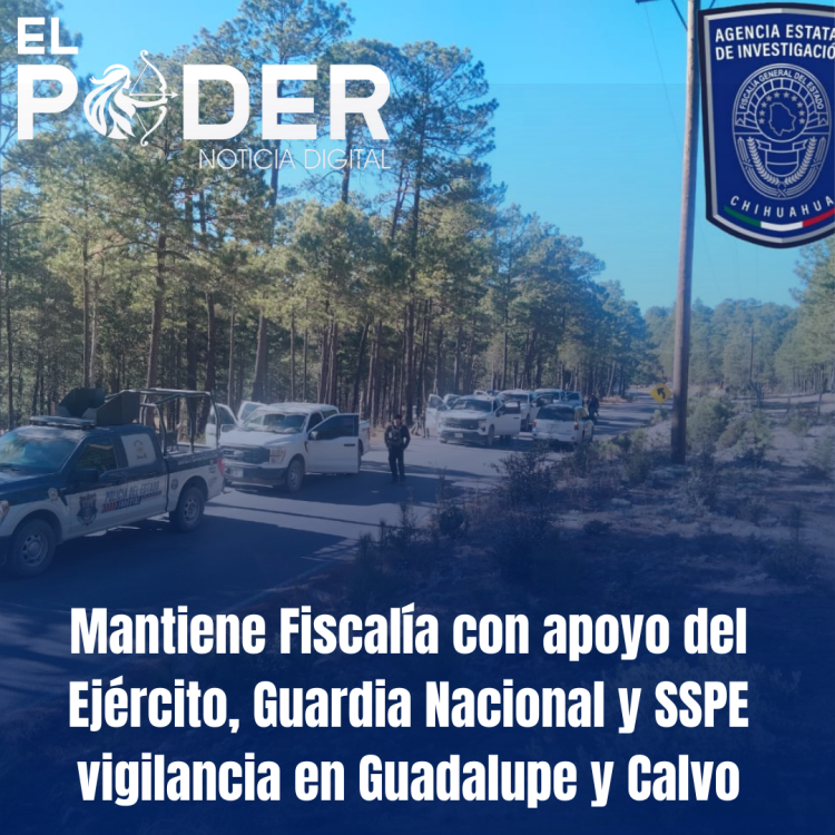 Participaron elementos de la Secretaría de la Defensa Nacional, la Guardia Nacional, la Secretaría de Seguridad Pública Estatal y la Policía de Investigación adscritos al destacamento de Guadalupe y Calvo, sin novedades que reportar.
