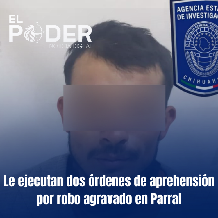 Personal de la Agencia Estatal de Investigación, ejecutó dos órdenes de aprehensión, ambas por el delito de robo agravado, en contra de un masculino que aparece como presunto responsable de los delitos cometidos en locales comerciales de la ciudad de Parral.