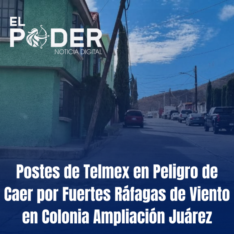 Colonia Ampliación Juárez.- En la intersección de Tascate y Capulín, dos postes de madera de Telmex se encuentran a punto de caer debido a las intensas ráfagas de viento que azotan la zona.