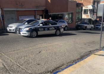 Choque entre camioneta y patrulla de Tránsito en el centro de Parral