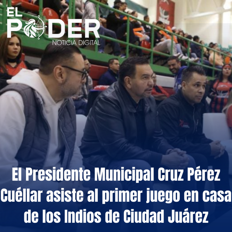 El Presidente Municipal Cruz Pérez Cuéllar acudió al emocionante primer juego en casa de los Indios de Ciudad Juárez, quienes se enfrentaron a los Toros Laguna en el gimnasio del Colegio de Bachilleres.
