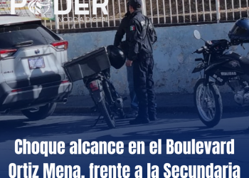 Choque alcance en el Boulevard Ortiz Mena, frente a la Secundaria Francisca Lozano Olivas