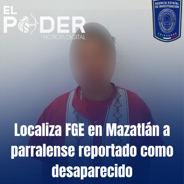 Como resultado de la activación de los protocolos de búsqueda de personas, la Fiscalía de Distrito Zona Sur localizó sano y salvo Juan R. V., persona de 30 años de edad, que contaba con reporte de desaparición interpuesto el 28 de octubre de 2024, en la ciudad de Parral.