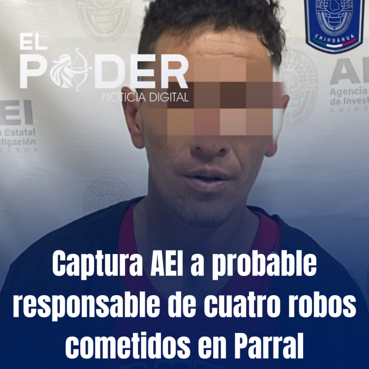 La persona detenida, de 28 años de edad, aparece como probable responsable de robos a casa habitación cometidos en la ciudad de Parral entre los meses de noviembre de 2024 y febrero del presente año.