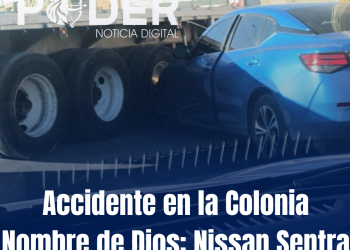 Esta mañana, se registró un accidente en la calle Colegio Militar, en la colonia Nombre de Dios, donde un Nissan ...
