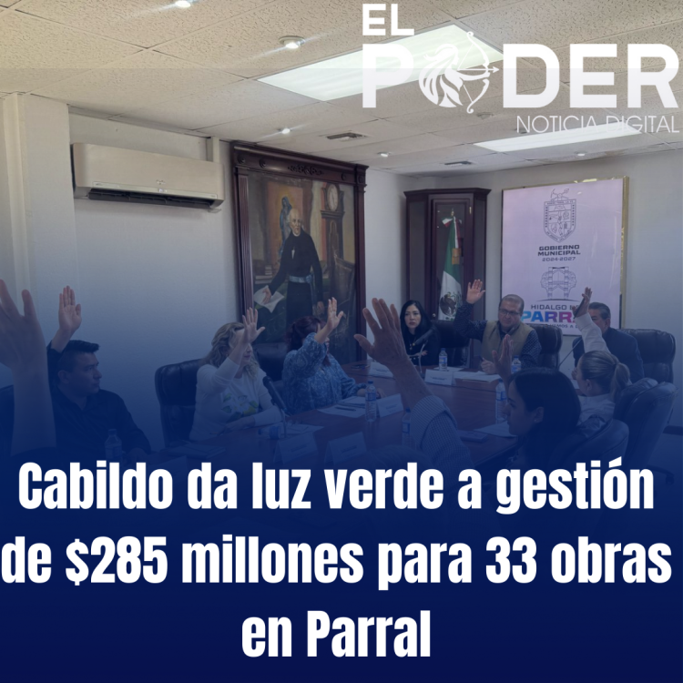 El Cabildo de Parral aprobó por unanimidad la propuesta del alcalde Salvador Calderón para gestionar un paquete de recursos federales por 285 millones de pesos, que estarían destinados a 33 obras con impacto directo en la infraestructura urbana y servicios públicos de la ciudad.