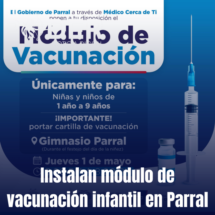 El Gobierno de Parral, a través del programa “Médico Cerca de Ti”, anunció la instalación de un módulo de vacunación dirigido exclusivamente a niñas y niños de entre 1 y 9 años de edad, como parte de las acciones permanentes de salud preventiva impulsadas por la administración municipal 2024–2027.