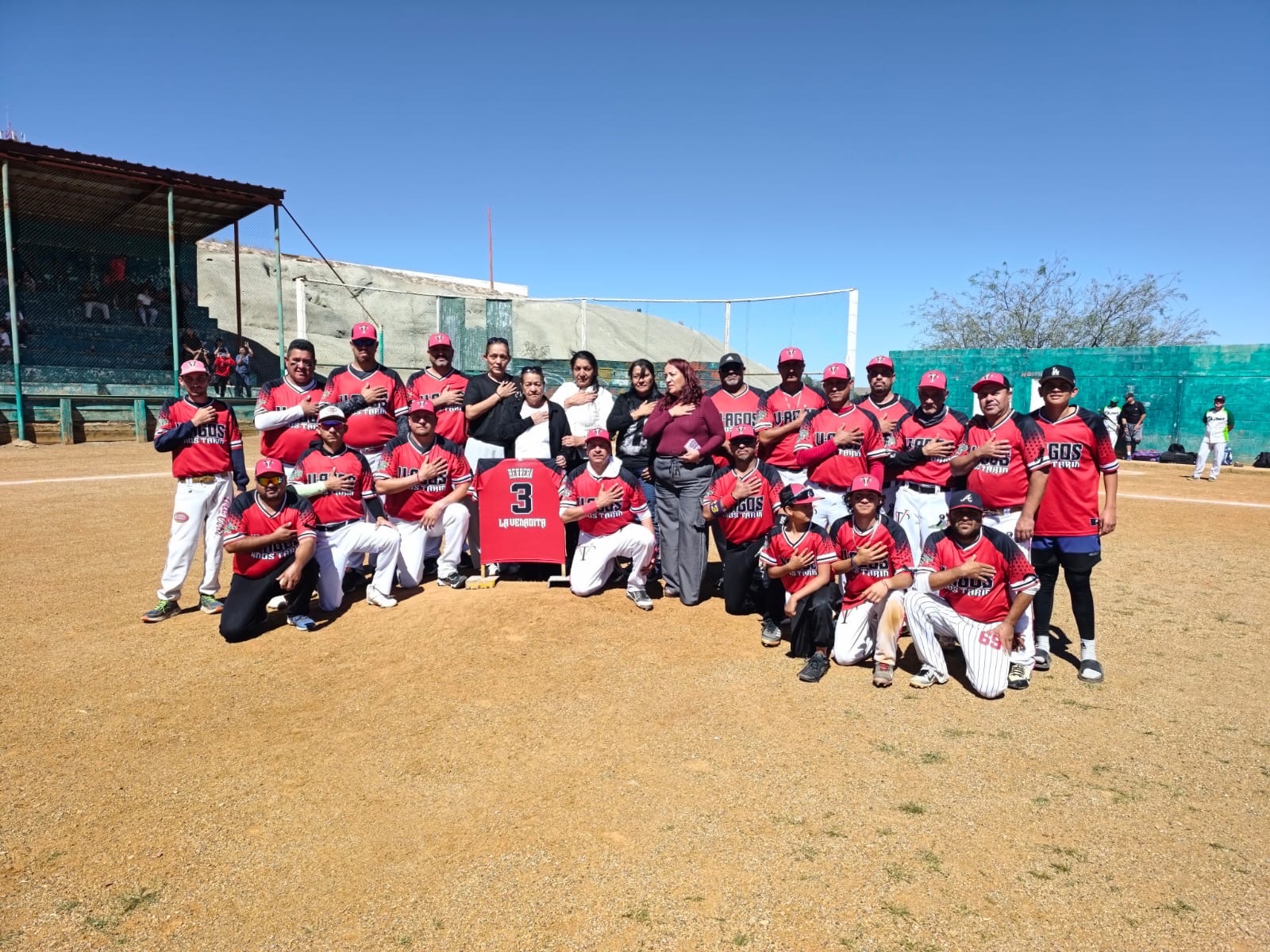 En una jornada cargada de respeto y memoria, los integrantes del equipo Vagos-Hermanos Tarín rindieron un homenaje póstumo a su compañero y amigo José Luis “Josito” Herrera, quien perdió la vida apenas una semana después de haber lanzado su último juego en la Liga de Veteranos de San Francisco del Oro.