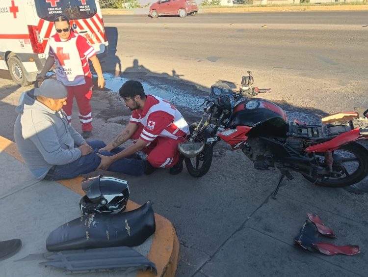 Motociclista resulta lesionado tras choque en el periférico sur; fue atendido en el lugar