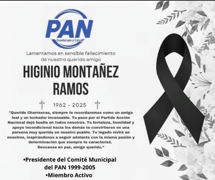 Profundo pesar ha causado en el municipio de Guadalupe y Calvo el asesinato de Higinio Montañez, mejor conocido como “Charrascas”, quien fuera presidente del Comité Municipal del Partido Acción Nacional (PAN) durante el periodo de 1999 a 2005.
