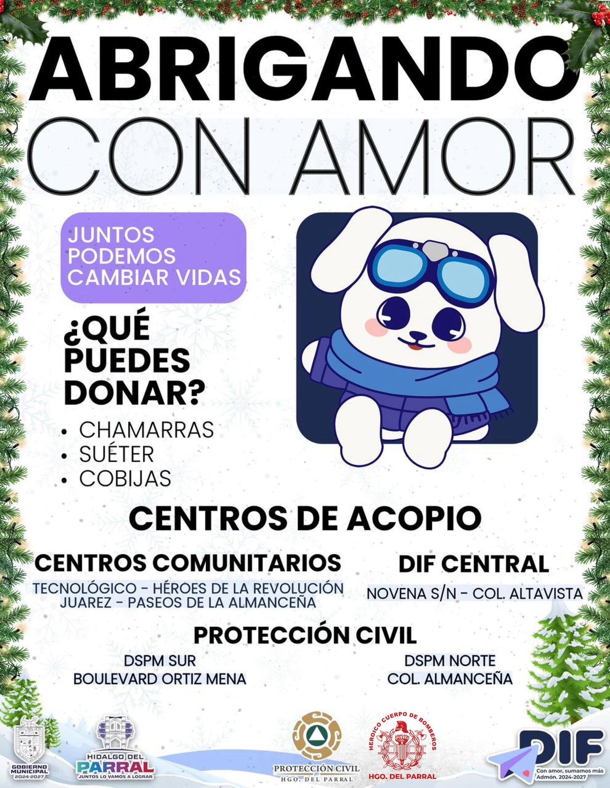 El Gobierno de Parral, a través del Desarrollo Integral de la Familia (DIF) Municipal, dio inicio a la campaña “Juntos Podemos Cambiar Vidas, Abrigando con Amor”, una acción que busca brindar apoyo a personas y familias en situación vulnerable durante la temporada invernal. La iniciativa invita a la ciudadanía a donar prendas abrigadoras que ayuden a proteger del frío a quienes más lo necesitan.