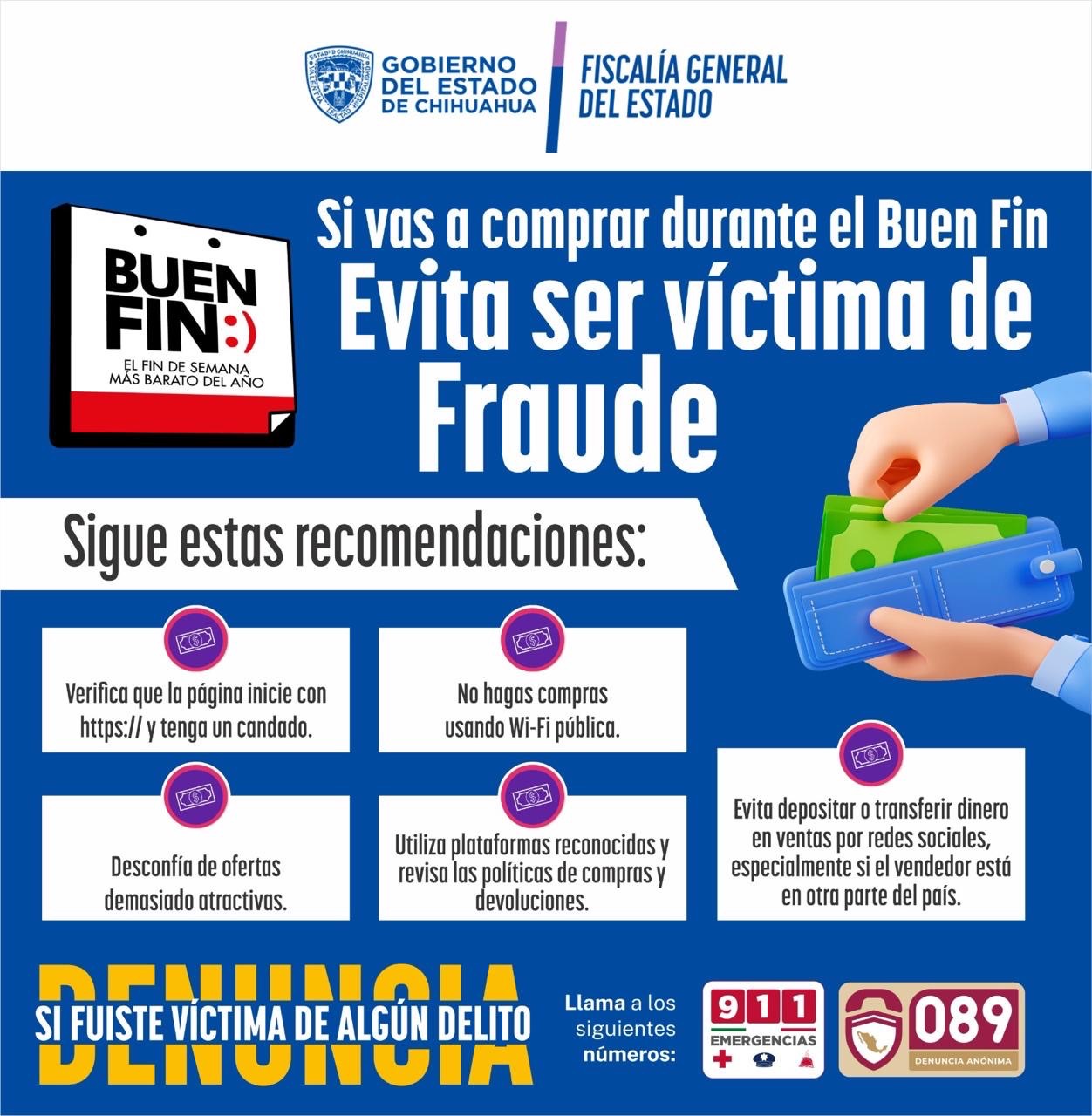 En la víspera del programa denominado Buen Fin, la Fiscalía General del Estado alerta a la población para evitar ser víctimas de algún fraude o estafa, principalmente a través de medios electrónicos.