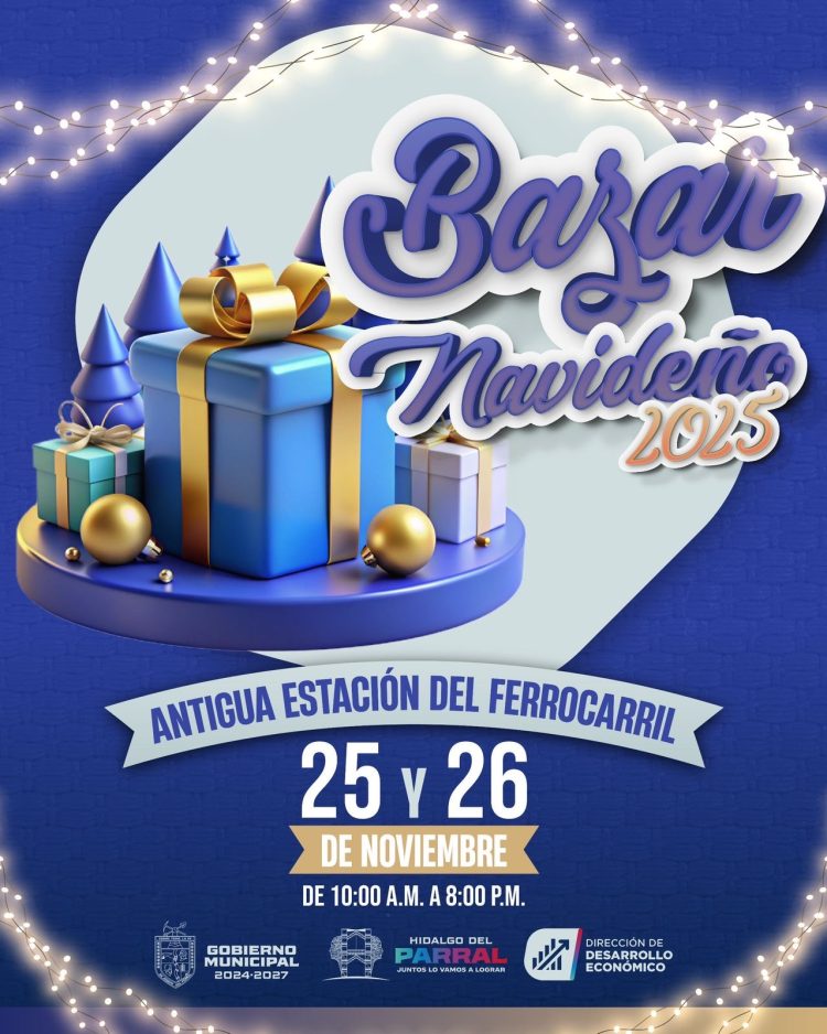 El Gobierno de Parral, a través de la Dirección de Desarrollo Económico, convoca a la ciudadanía a disfrutar del Gran Bazar Navideño 2025, un espacio creado para fortalecer la economía local y facilitar la compra de artículos para la temporada decembrina.